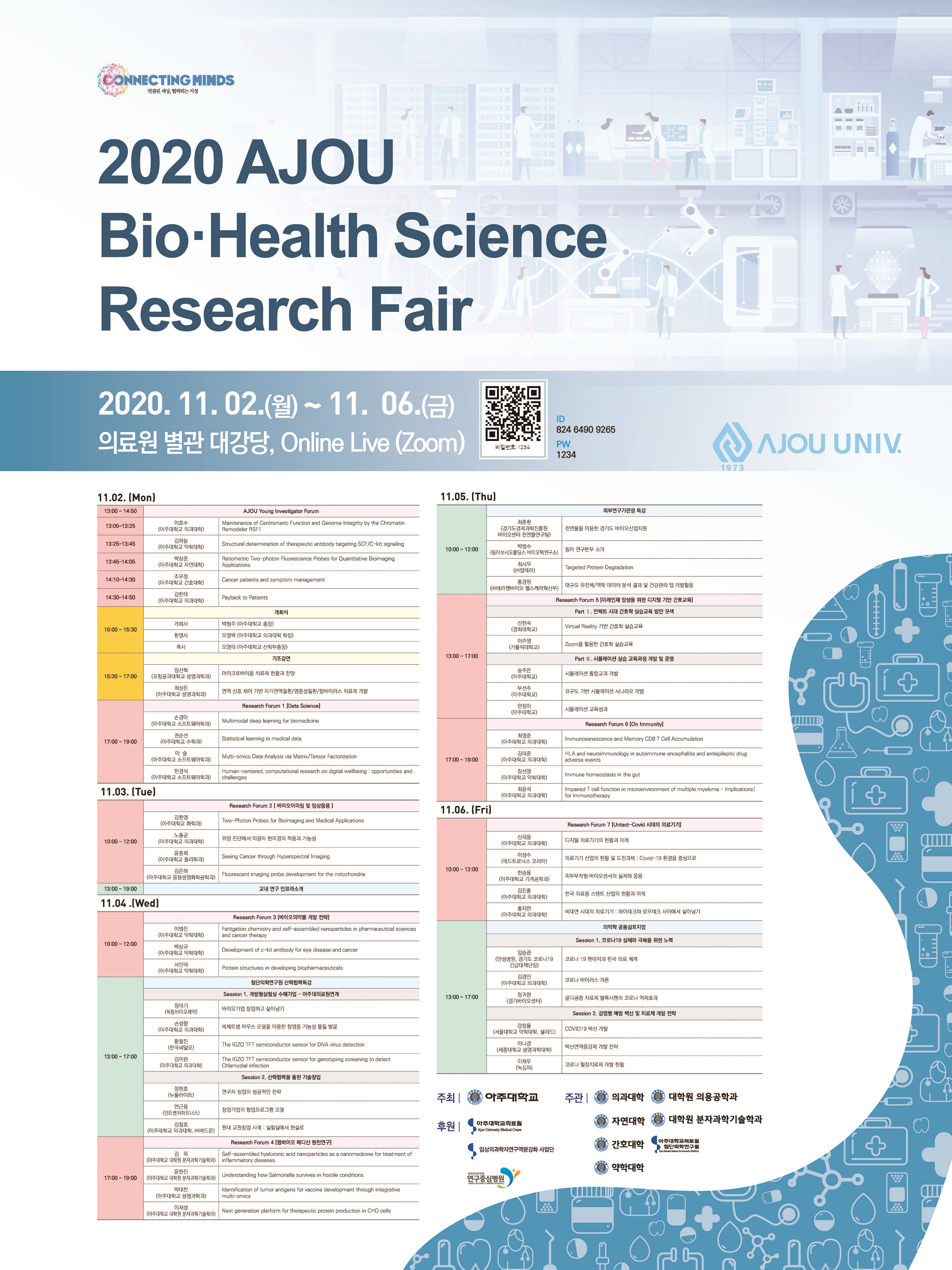 우리 학교 LINC+사업단이 '켐바이오메디신 산학협력센터'와 기업협업센터를 개소했다. 두 센터를 이끄는 켐바이오메디신 교육연구단은 우리 학교 대학원 분자과학기술학과와 화학, 생명공학, 의약학 분야의 연구진으로 구성되었으며 앞으로 관련 산학 공동 연구를 주도해갈 계획이다.개소식은 지난 5일 우리 학교 연암관에서 열렸다. 켐바이오메디신(Chem-bio Medicine) 산학협력센터 및 기업협업센터(ICC, Industrial coupled Cooperation Center) 개소식과 R&D 기술매칭 페어가 함께 마련됐다. 이번 행사는 코로나19 예방 차원에서 온‧오프라인을 결합한 하이브리드 형식으로 진행됐다.이번 개소식에는 오영태 산학부총장(위 사진 왼쪽), 김용성 켐바이오메디신 산학협력센터장(응용화학생명공학과 교수, 위 사진 오른쪽)를 비롯한 우리 대학 관계자들이 자리했다. 외부 위원으로는 한국특허전략개발원 사업확산전략본부 판현기 본부장, 과학기술일자리진흥원 기술사업화팀 이정우 팀장 등이 참석했다. 박형주 아주대 총장은 영상을 통해 센터의 개소를 축하했다.이번에 개소한 산학협력센터와 기업협업센터에는 우리 대학 켐바이오메디신 교육연구단을 주축으로 경기바이오센터를 포함한 48개 기업이 참여한다. 참여 기관들은 앞으로 지역 산업과의 연계를 위해 원천연구 및 중개연구, 실용화 등에 노력할 계획이다. 아주대 켐바이오메디신 산학협력센터는 제4단계 BK21 사업단 선정을 위한 평가에서 바이오헬스·혁신신약 분야 사업단 가운데 1위에 해당하는 성적을 받은 바 있다. 센터장은 맡은 김용성 교수는 “켐바이오메디신 산학협력센터는 기술이전에서 좋은 성과를 내고 있다"며 "센터 참여 교수 중 절반 이상인 12명 이상이 기술이전에 대한 성공 경험이 있어, 이를 바탕으로 산업체에서 필요로 하는 기술을 파악하고 해결하기 위한 실사 연구에 몰두하고 있다"고 설명했다.켐바이오메디신 산학협력센터는 최근 5년간 27개 회사와 약 37건의 계약을 맺어 420억원 상당의 계약금을 유치했다고 밝혔다. 체결된 계약 중 14건 이상이 1억원 이상 규모로 기술이전의 수준 또한 높다. 박형주 총장은 환영사를 통해 “아주대의 슬로건이 바로 ‘연결지성으로 세상을 변화시키는 대학’"이라며 "기술사업화를 위한 산학공동연구 수행을 통해 대학과 기업이 상생발전하고 시너지를 낼 수 있을 것"이라고 말했다. 오영태 산학부총장은 축사에서 “켐바이오메디신 산학협력센터는 분자과학기술학과 생명과학, 응용화학, 의약학의 융복합을 기반으로 원천연구에서 실용화까지 전 주기적인 교육과 연구를 수행하고 있다"며 "LINC+사업단은 기업협업센터(ICC)를 통해 아주대 4대 산학협력 특화 분야인 바이오·헬스케어, AI·빅데이터, 신재생에너지, 스마트모빌리티 분야에서 공동기술개발과 산학연계교육 등을 종합적으로 추진해 나갈 계획"이라고 강조했다. 아주대는 대학의 핵심역량을 기반으로 특화 산업분야(바이오‧헬스케어, 스마트 모빌리티, 신재생에너지, AI‧빅데이터)를 선정하고, 해당분야 기업과 연계하여 인력양성과 기업협업을 종합적으로 추진하는 기업협업센터(ICC)를 운영하고 있다. 이를 통해 산학공동기술 개발을 비롯한 다양한 사업을 추진하고 있으며 사회공헌 활동도 벌이고 있다.