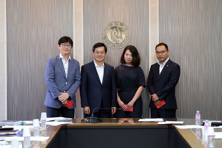2016년 2학기부터 새롭게 임용된 교원들에 대한 임용장 수여식이 26일 오전 율곡관 제1회의실에서 열렸다. 이 날 신규 임용된 교원은 총 16명으로 본교 14명, 의료원 2명이다. 수여식에는 김동연 총장을 비롯한 주요 보직교수들이 참석해 신임교원들을 맞이했다. 수여행사는 신임 교원들에 대한 소개와 임용장 수여, 오찬으로 이어졌으며 오후에는 주요 부서별 업무 안내의 시간으로 진행됐다. 김동연 총장은 “우리학교는 최근 대학사회를 변화시키기 위해 ‘유쾌한 반란’을 시도 중이다. 오늘 아주가족이 된 신임 교원들도 아주대의 유쾌한 반란에 동참해 학교발전에 많은 기여를 해주기를 바란다”고 말했다. 한편, 신임교원 명단은 다음과 같다. ▲ 김주형(화학공학과, 조교수) ▲ 김종현(응용화학생명공학과, 조교수) ▲ 김진영(건축학과, 조교수) ▲ 황원준(소프트웨어학과, 조교수) ▲ 이지은(물리학과, 조교수) ▲ 김하영(금융공학과, 조교수) ▲ 윤대균(소프트웨어학과, 부교수/산학협력중점교수) ▲ 최재영(소프트웨어학과, 부교수/산학협력중점교수) ▲ 김종현(사이버보안학과, 부교수/산학협력중점교수) ▲ 문남식(수학과, 부교수/산학협력중점교수) ▲ 임창수(화학과, 조교수/연구중점교수) ▲ 이택균(다산학부대학, 조교수/교육중점교수) ▲ 오하영(다산학부대학, 조교수/교육중점교수) ▲ 구은희(다산학부대학, 조교수/교육중점교수) ▲ 김보현(의학과, 조교수) ▲ 안정아(간호학과, 조교수)