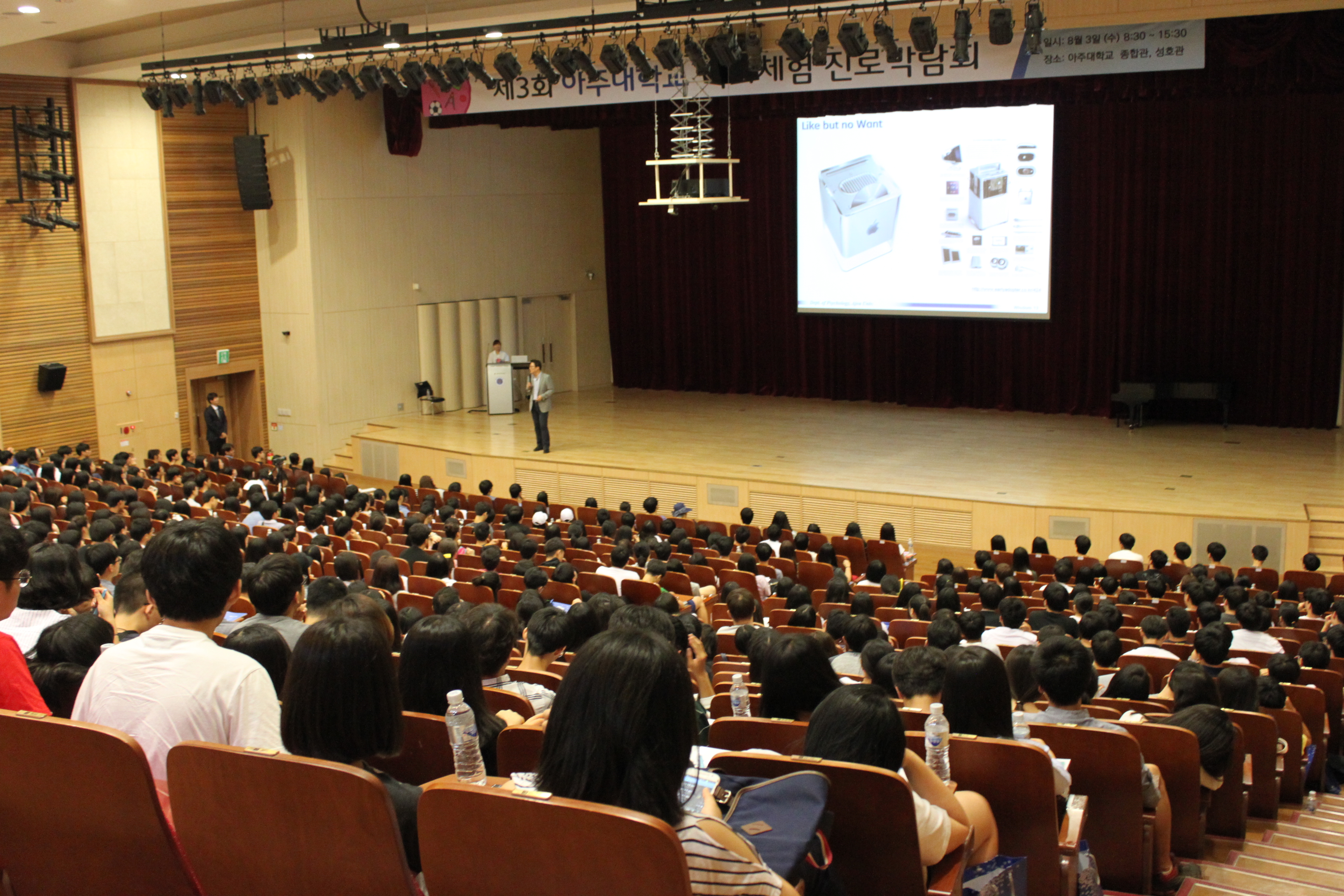 올해로 3회째를 맞이한 학과체험 진로박람회가 지난 3일 성황리에 마무리 됐다. 더운 날씨에도 불구하고 중고등학생들과 학부모 등 1천여명이 참여했다. 학과체험 진로박람회는 중·고교생들이 학과에 대한 이해를 높이고 진로를 상담 받을 수 있는 기회를 제공하기 위해 마련됐다. 7월19일부터 사전접수를 통해 참여자를 모집한 이번 박람회는 접수 시작 직후 신청이 마감돼 우리학교 학과체험진로박람회에 대한 인기를 반증하기도 했다. 이날 행사는 김경일 입학사정센터장의 진로특강을 시작으로 전형안내, 학과강의, 학과체험, 1:1상담의 순으로 진행됐다. 학과강의 시간에는 20개 학과 교수들이 직접 강사로 나서 학과에 대한 소개와 학생들의 질문에 직접 답하는 시간을 가져 큰 호응을 얻기도 했다. 이효진(성지고 2) 학생은 “심리학과 학과강의를 들었는데 교수님이 학과 설명과 함께 대학원 진학에 대해서도 설명해줬다. 대학원에 대한 정보도 얻을 수 있어 새롭고 좋았다”며 “질문에도 답변을 잘 해주셔서 많은 정보를 얻었다. 다음에도 기회가 된다면 또 오고 싶다”고 말했다. 학과강의에는 기계공학과, 생명과학과, 국방디지털융합학과, 소프트웨어학과, 간호학과, 화학공학과, 국어국문학과, 사학과, 심리학과 경제학과, 전자공학과, 신소재공학과, 건축학과, 산업공학과, 약학과, 미디어학과, 금융공학과, 경영학과, 행정학과, 문화콘텐츠학과 총 20개 학과가 참여했다. 특히 이번 박람회부터 국방디지털융합학과, 약학과, 금융공학과 등 특성화학과가 새롭게 포함돼 참가학생들의 큰 관심을 받기도 했다. 학과체험은 전자공학과의 축구로봇 만들기, 의학과의 뼈키트 맞추기, 심리학과의 범죄심리테스트 ‘범인 찾기’ 등 총 20개 학과의 체험이 진행됐으며 해당 학과 재학생들도 함께해 참가자들이 직접 대학의 전공을 경험할 수 있는 기회가 됐다. 또 입학사정관과의 일대일 상담 역시 학생들의 호응이 높았다. 사전에 신청한 총 60명 학생이 이날 일대일 상담을 받았다. 상담 받고 나온 최은별(우성고3) 학생은 “선배 추천으로 박람회에 오게 됐는데 학과 설명에 이어 일대일상담까지 받을 수 있어 좋았다”며 “아주대 자기소개서를 쓰고 있는데 꼭 입학해서 캠퍼스를 거닐고 싶다”고 말했다. 고1학생을 둔 학부모 노현숙 씨는 “교수님의 진로특강이 큰 도움이 됐다”며 “아이가 관심 있는 학과가 있었는데 좋아하는 것과 잘할 수 것을 판단할 수 있는 계기가 됐다”고 말했다.