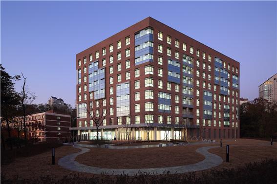 우리 학교 국제학사 준공식이 12일 오전 열렸다. 국제학사는 외국인 학생과 교원 등 450여명을 수용할 수 있는 기숙사 건물이다. 이날 행사에는 안재환 총장과 추호석 대우학원 이사장을 비롯한 교내외 인사 100여명이 참석했다. 이영현 대우학원 상임이사와 유희석 의무부총장, 유재석 대학원장, 김민구 기획처장, 김윤기 생활관장, 신의섭 제34대 총학생회장, 왕태호 제39대 사생회장, 정승화 총동문회 수석부회장, 정재영 대우조선해양건설 대표, 김성대 서울건축 대표도 함께 자리했다. 준공식은 경과보고와 총장 기념사, 테이프 커팅, 현장 투어의 순으로 진행됐다. 안재환 총장은 기념사를 통해 “오늘 준공한 국제학사는 단순히 기숙사 학생 수용률의 증가만을 의미하지는 않는다”며 “앞으로 국제학사는 재학생과 외국인 학생들이 자연스럽게 어울릴 수 있는 작은 글로벌 공간이 될 것”이라고 말했다. 지난해 8월 착공한 국제학사는 지상 9층 규모로 건축면적 357평, 연면적 3054평 규모다. 교원을 위한 사택 19실과 학생을 위한 사생실 203실, 공동 세탁실, 체력단련실, 명상실, 무인택배실 등의 시설을 갖추고 있다. 내년 3월 신학기 입주를 목표로 마무리 작업이 진행 중이다. *사진1-국제학사 외관(촬영 사진작가 김재경) *사진2-국제학사 준공식 테이프 커팅