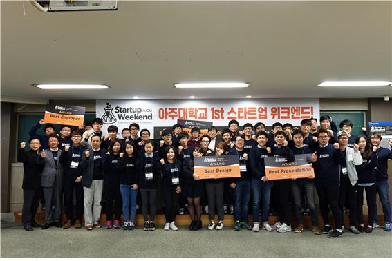 우리 학교가 국내 대학 처음으로 대학생을 대상으로 한 ‘스타트업 위크앤드(Startup Weekend)’ 행사를 열었다. 학생들의 아이디어를 발굴하고 실질적 창업까지 이어질 수 있도록 돕는 스타트업 위크앤드는 해외 대학에서 가장 활성화된 창업 지원 프로그램 중 하나다. 이 행사는 링크사업(LINC, 산학협력 선도대학 지원사업)의 일환으로 진행됐다. 지난 7일부터 9일까지 2박3일 동안 아주대 율곡관에서 열린 ‘아주 스타트업 위크앤드’는 창업을 하고자 하는 학생들이 각자의 아이디어를 발표하고 그 중 우수한 아이디어를 자체적으로 선정한 후, 다시 개발자·기획자 등으로 새로운 팀을 구성해 시제품을 제작하고 최종 결과물을 평가받는 과정을 거쳤다. 이를 통해 창업의 기본과정을 경험할 수 있도록 하기 위해서다. 50여명의 재학생이 참여해 총 9팀을 구성한 이 행사에서는 ▲코디 세트 렌탈 서비스 ▲인터랙티브 e-북 디벨로퍼 키트 ▲역소셜커머스 ▲랭킹 서비스 ▲위치기반 SNS ▲헬스케어와 게임 접목 스마트 워치 앱 ▲교내 전자투표 시스템 ▲실시간 뉴스 팝 서비스 ▲시각장애인 대상 음성 콘텐츠 제공 서비스와 같은 아이디어가 나와 교내외 심사위원들의 호평을 받았다. ‘아주 스타트업 위크앤드’는 구글(Google)이 후원하는 창업 프로그램인 ‘스타트업 위크앤드’의 프로그램 포맷과 운영 노하우에 기반을 두고 진행됐다. 최종 프리젠테이션을 거쳐 선발된 4팀이 수상의 영광을 안았다. 수상팀 명단은 아래와 같다. ▲비즈니스상: 원밸로퍼스 아주대 전자투표 시스템- 방성주(미디어학과), 권민재(소프트웨어융합학과) ▲디자인상: 렌트행거 코디 세트 렌탈 서비스-지혜림(경제학과), 박나래(영어영문학과), 이동규(정보컴퓨터공학과), 정재웅(미디어학과) ▲베스트 엔지니어상: 레이드 인터랙티브 e-북 디벨로퍼 키트-이우석(대학원 라이프미디어학과), 류기현(대학원 라이프미디어학과), 김기훈(미디어학과), 안승태(대학원 라이프미디어학과) ▲프리젠테이션상: 그랭 랭킹 서비스-류익한(정보컴퓨터공학과), 이승윤(정보컴퓨터공학과), 김광현(기계공학과), 박인성(영어영문학과) 링크 사업단은 이러한 열기를 내년 열리는 심화 프로그램까지 이어간다는 계획이다. 내년 1월5일부터 6주간 열리는 ‘아주 스타트업 거라쥐(Ajou Startup Garage)’는 학생 벤처 창업가들을 집중 교육해 세계 시장을 목표로 실제 창업을 할 수 있도록 지원하는 프로그램이다. 참여자들은 국내외 전문가의 멘토링 뿐 아니라 투자자와의 네트워킹, 공간 제공 및 활동비 지원 등에 있어 도움을 받게 된다. 또 미국 실리콘밸리 전문가들이 직접 아주대학교를 방문하여 학생 벤처 창업가들을 만나 멘토링 하는 시간을 가질 예정이다. 학교는 이 두 프로그램을 링크사업(LINC, 산학협력 선도대학 지원사업) 내 창업 지원 프로그램으로 정착시켜 나갈 계획이다. 우리 학교는 지난 5월 교육부 주관 산학협력 선도대학 육성사업에 선정됐다. 이 사업은 산업체의 수요에 부합하도록 대학 교육의 체질을 개선해 대학과 지역(기업)의 경쟁력을 강화한다는 목적으로 시작된 국책 사업이다.