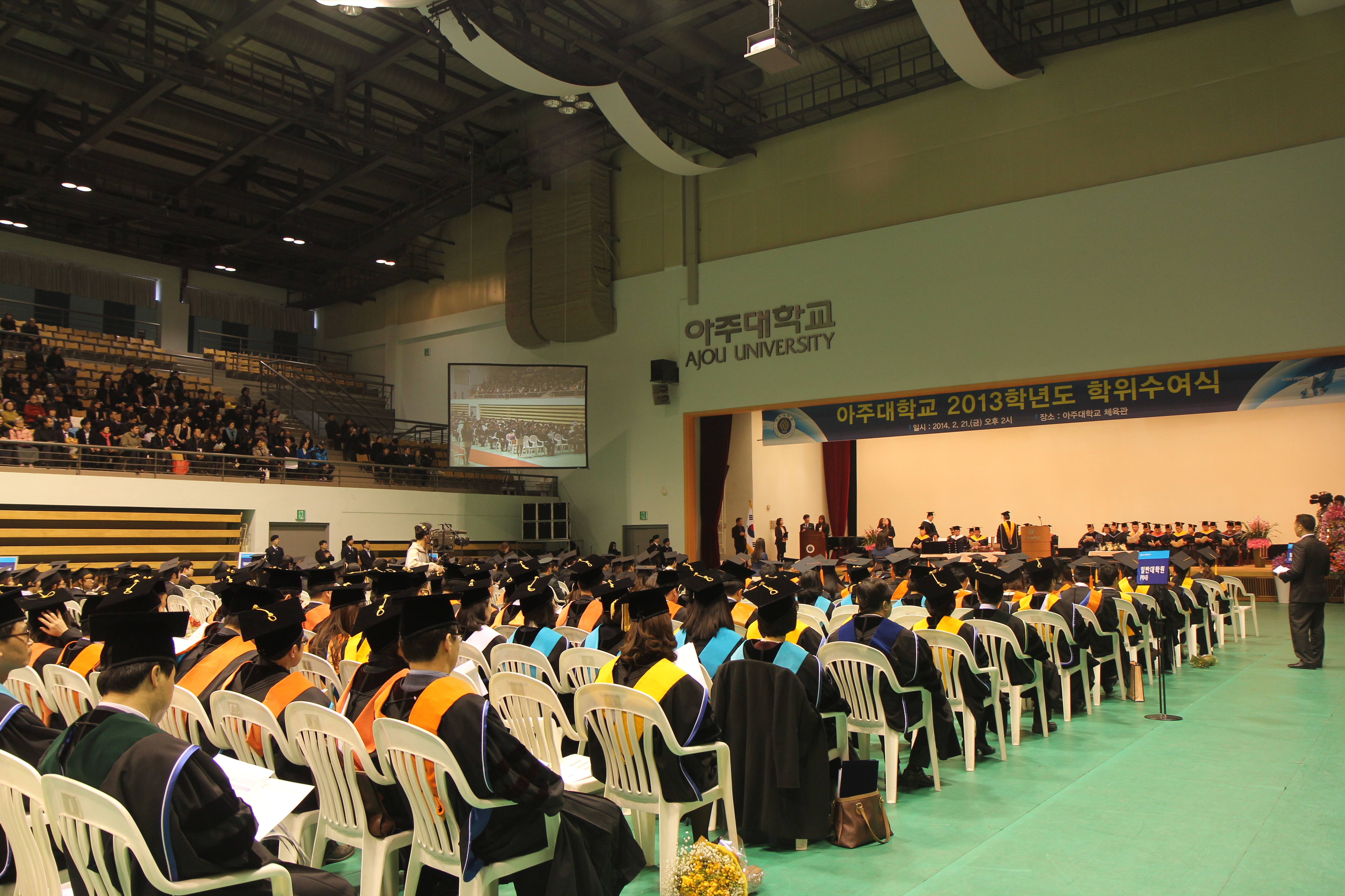 우리 학교 2013학년도 전기 학위수여식이 21일 오후 2시 체육관에서 열렸다. 이번 학위수여식에서 졸업장을 받은 인원은 학사 2182명, 석사 380명, 박사 125명이다. 학사 학위의 경우 2014년 2월 졸업자가 1454명, 2013년 8월 졸업자가 728명이며 석사 학위의 경우 2014년 2월 졸업자가 262명, 2013년 8월 졸업자가 118명이다. 박사 학위 수여자는 2014년 2월 졸업이 76명, 2013년 8월 졸업이 49명이다. 졸업식은 박영동 교무처장의 학사보고, 안재환 총장의 학위수여식사, 시상, 학위수여의 순으로 이어졌다. 공과대학의 이관우 학생을 비롯해 9개 단과대학에서 총 9명의 학생이 성적우수상을 수상했고 대내외 실적 우수상, 대내외 활동 우수상이 각 4명의 학생에게 주어졌다. 간호대학 원숙영 학생과 인문대학 추동하 학생은 각각 총동문회장상, 주한프랑스대사상을 받았다. 수상자 명단은 아래와 같다. ▲총장상 *공과대학 이관우 *정보통신대학 권효정 *자연과학대학 김원태 *경영대학 우상겸 *인문대학 신원철 *사회과학대학 이현기 *법과대학 연형진 *의과대학 조수연 *간호대학 백초원 *공과대학 김영태 *정보통신대학 박현주 김동진 *자연과학대학 강예원 *공과대학 정경철 *경영대학 손종진 *인문대학 남정민 *법과대학 권현정 ▲총동문회장상 간호대학 원숙영 ▲주한프랑스대사상 인문대학 추동하 안재환 총장은 “우리 졸업생들이 마주하게 될 세상은 녹록하지 만은 않다”며 “하지만 자신에 대한 믿음과 열정을 가지고 한걸음 한걸음씩 나아가다 보면 반드시 목표를 성취할 수 있을 것”이라고 당부했다. 안 총장은 또 “조급하게 일희일비 하지 말고, 중요한 것은 속도가 아니라 방향이라는 생각을 가지고 묵묵히 걸어 나가라”며 “약자에 대한 배려와 타인에 대한 존중도 우리 졸업생들에게 당부하고 싶은 가치”라고 덧붙였다. 한편 안재환 총장은 졸업식에 앞서 이날 오전 ‘졸업생과의 대화’ 시간을 가졌다. 졸업생 대표 13명과 학부모들이 참석해 이야기를 나눴다. 박영동 교무처장, 조재형 학생처장, 박일분 학생지원팀장도 함께 참석했다. 졸업생 대표들과 안 총장은 학교에 대한 건의사항과 발전방안 등에 대해 이야기를 나눴다.