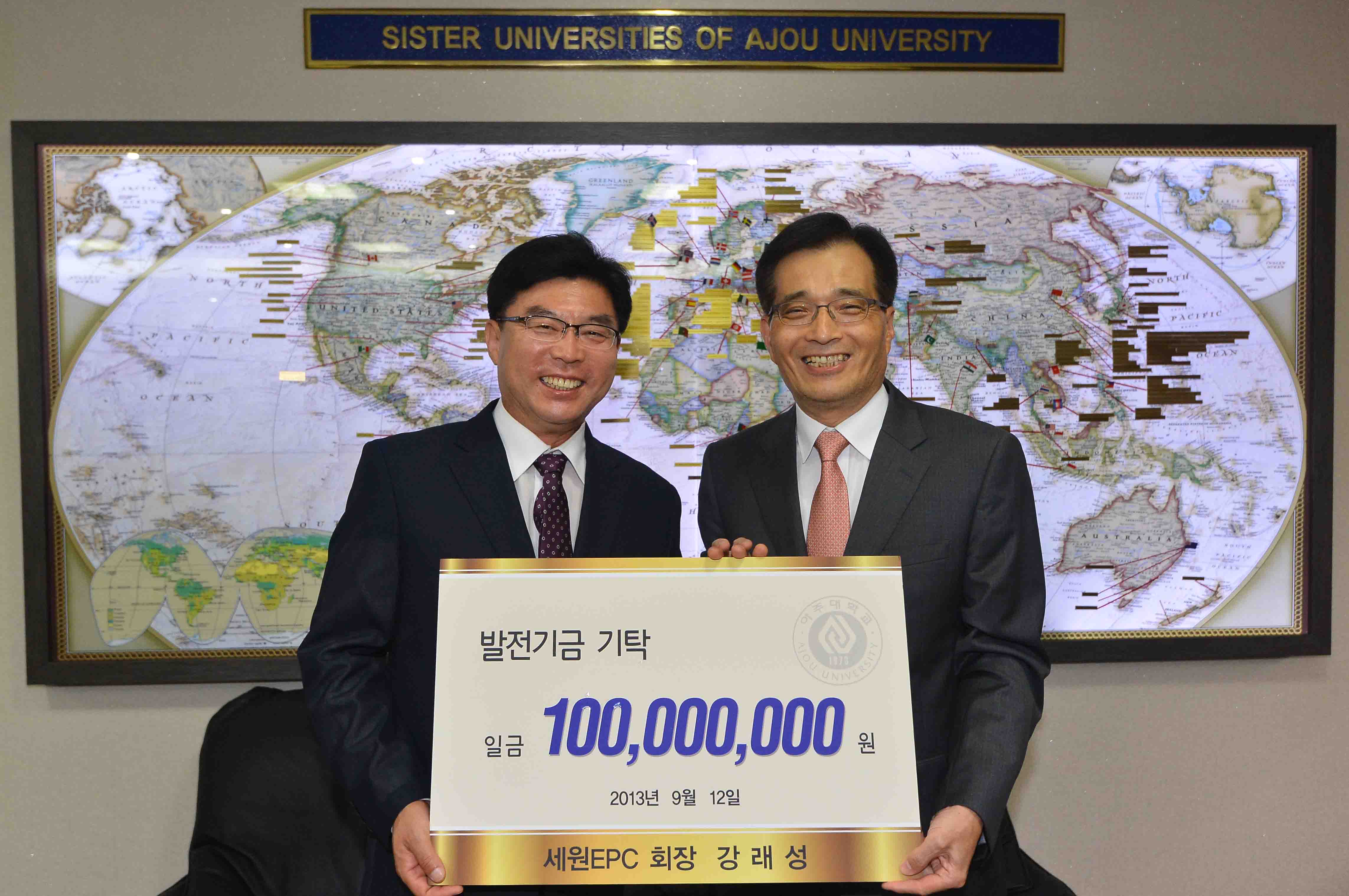 안재환 총장과 허무관 총학생회장 등 학생대표 9명과의 만남이 4일 오전 11시 총장실에서 열렸다. 이번 간담회는 개강을 맞이해 총장과 학생들간의 격의를 없애고 학교발전을 위해 의견을 교환하자는 취지에서 개최됐다. 총학생회장을 비롯한 학생대표들은 각종 교내 사안들에 대해 건의 또는 질의하고, 총장으로부터 직접 답변을 들을 수 있었다. 총학생회장은 학생들이 많은 관심을 가지고 있는 중앙일보 대학평가의 진행상황에 대해 질문했고, 총장은 “경쟁대학들의 지표 차이가 근소해 경쟁이 치열하다. 우리학교는 여건상 상승 동력이 연구부분에 있다고 판단하고 이를 강화하기 위해 연구연보 제작, 우수논문상 시상 등의 정책을 펼치고 있다. 연구의 특성상 당장보다는 수년 내 결실을 맺을 것으로 기대한다.”고 말했다. 또 온수와 장애우 시설 등 노후시설 개선에 대해서도 “모두가 캠퍼스마스터플랜에 따라 실현 중에 있다. 단, 실현의 순서는 계획되어 있는 것이므로 원칙은 지켜져야 한다. 궁극적으로 아름답고 자랑할 수 있는 캠퍼스를 만들어야 하는데 학생들의 참여와 아이디어를 많이 제시해주었으면 한다.”고 안 총장은 말했다. 공과대학 학생회장은 “학교식당의 음식 맛에 대해 학생들의 불만이 많은 편이다. 하지만 개선이 잘 안 된다. 학교 측에서 조치가 있었으면 한다.”고 말했다. 이에 안 총장은 “교내 먹거리의 질이 매우 중요한데 저렴한 가격을 유지하면서도 맛있는 것을 찾으려 여러 방법을 시도하고 연구를 해봐도 마땅한 해결책을 찾지를 못하고 있다. 학생들이 구체적인 안을 학교에 제시해주고 학교와 같이 문제를 해결책을 찾았으면 한다.”고 제안했다. 약학대학 학생회장은 "아직 한 학년이 입학하지 않았음에도 불구하고, 약학관 내 강의실이 부족하다. 강의환경이 개선되었으면 한다."고 건의하자 "약학관 설계가 당초 계획에서 변경되었다는 이야기가 있는데 당초 계획대로 지어진 것이 맞다. 사실 약학대학의 공간사용은 다른 대학에 비해 비효율적인 측면이 있다. 하지만 학생들에게 쾌적한 환경의 강의실 제공은 최우선 사항이므로 2014학년도부터는 쾌적하게 수업받을 수 있도록 약학대학장, 교무팀 등과 협의하여 조치하도록 하겠다."고 약속했다. 그 외 총학생회 기념품 사업 협조, 학교 발전기금 모금 공감대 형성 등 각종 학교 문제들에 대해 총장과 학생대표들은 의견을 교환하는 시간을 가졌다. 학교 측 참석자는 총장, 학생처장 그리고 학생지원팀장이었으며 학생대표로는 총학생회 회장과 부회장 그리고 공과대학, 정보통신대학, 자연과학대학, 경영대학, 인문대학, 법과대학, 약학대학 학생회장이 참석했다.