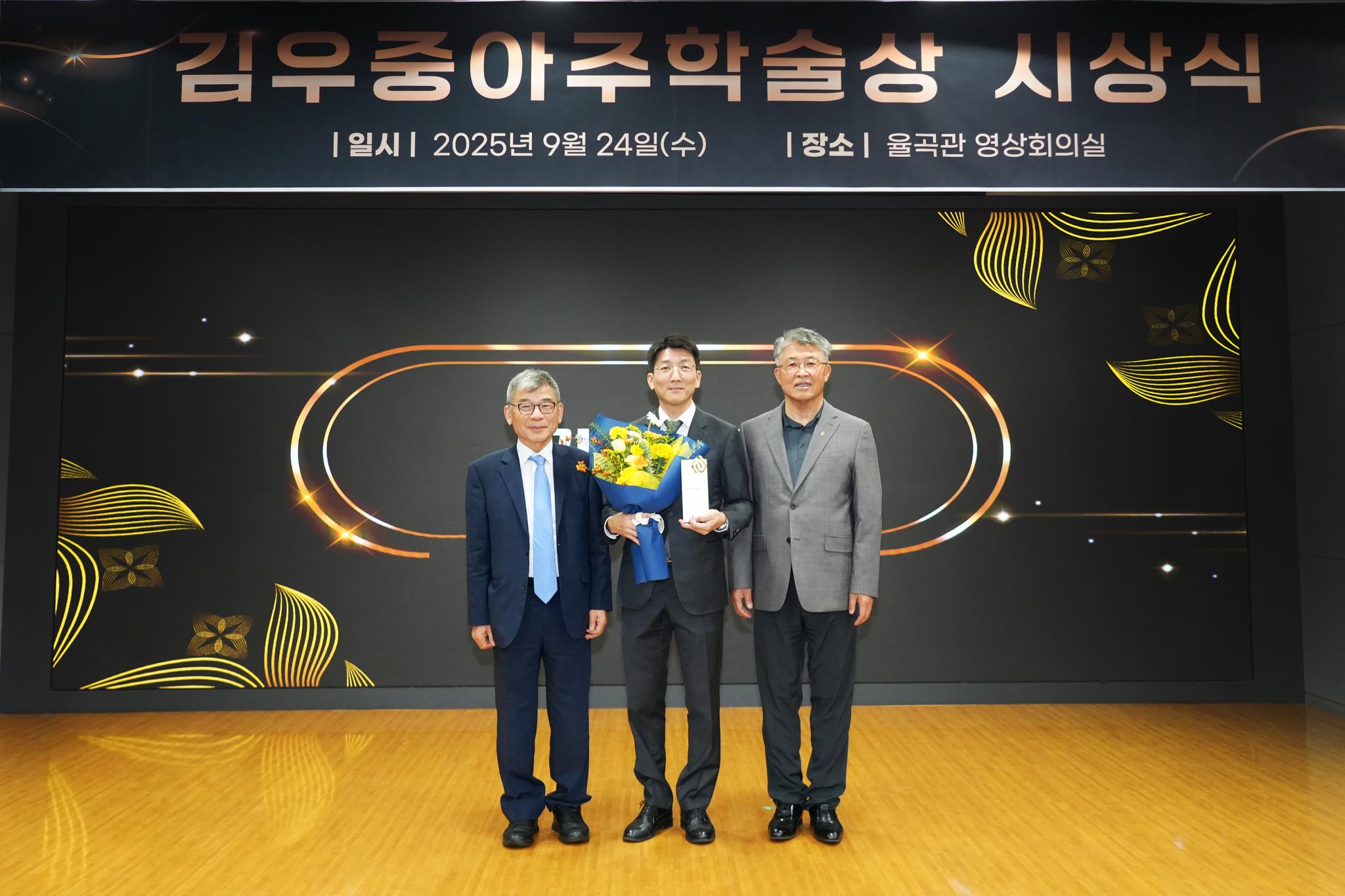 24일 아주대 율곡관에서 <김우중아주학술상> 시상식이 개최됐다. ▲학술상 및 심의과정 소개(안병민 연구정보처장) ▲최기주 총장 인사말 ▲최종욱 기부자 축사 ▲연구내용 소개 및 소감 발표(고제성 교수)와 ▲상금 및 상패 증정이 이어졌다.