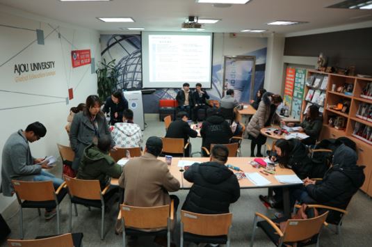국제교류팀은 지난 14일 율곡관 153호, 영상회의실에서 2018학년도 1학기 순수외국인특별전형 입학 설명회를 개최하여 내년 1학기 입학을 준비하는 약 50여명의 외국인 학생들이 참가했다.설명회 1부에서는 아주대학교 소개, 전형 일정 등 소개하였고 2부에서는 외국인 학생들이 많이 재학하고 있는 미디어학과, 경영학과, 국어국문학과, 문화콘텐츠학과, 교학팀과 함께 학과별 질의응답 및 상담을 진행했다.