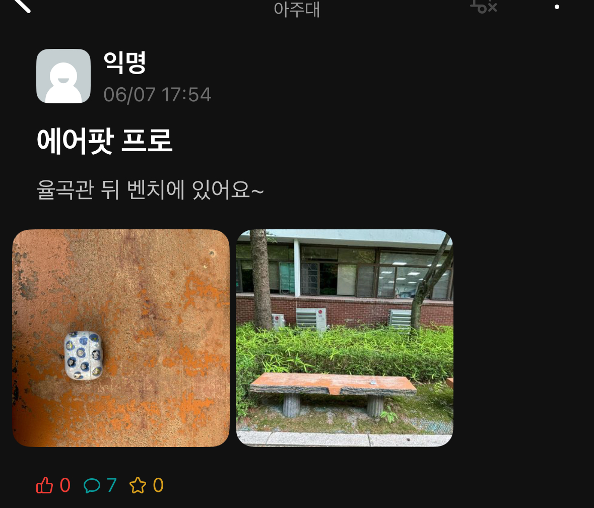 [종합지원센터] 나이키 모자, usb(총3개), 에어팟 프로, 에어팟, 개구리키링 달린 차키, 원패스카드, 블루투스 이어폰* 보관 중입니다.