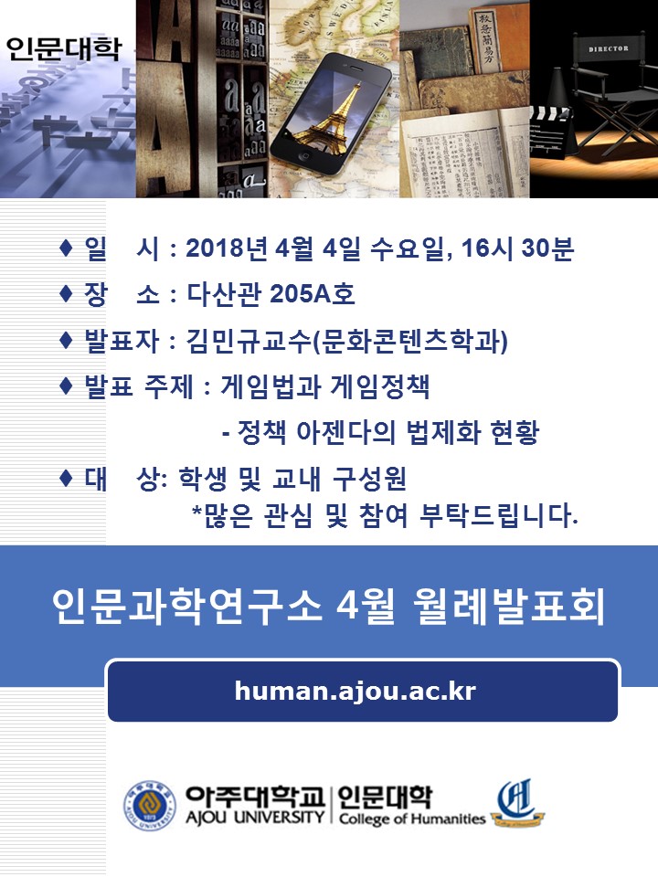627 | 세미나/포럼 | 교내 | 김영수 | 2018-04-02 | ||
