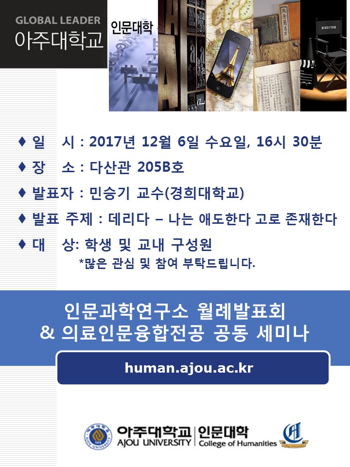 599 | 세미나/포럼 | 교내 | 김수현 | 2017-12-06 | ||