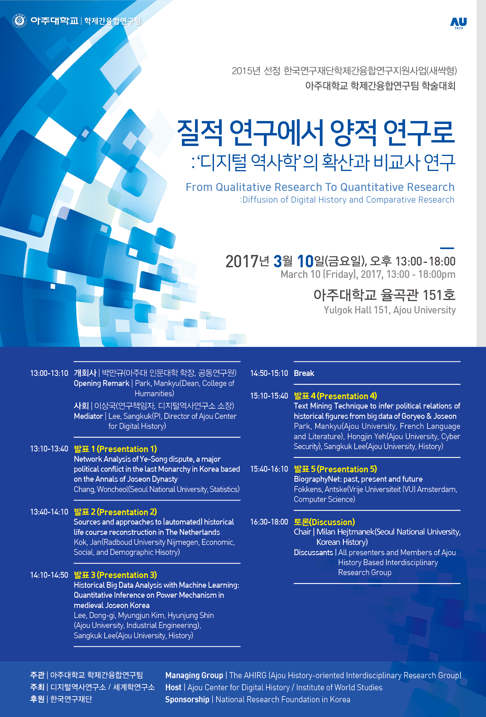 455 | 세미나/포럼 | 교내 | 정승은 | 2017-02-20 | ||