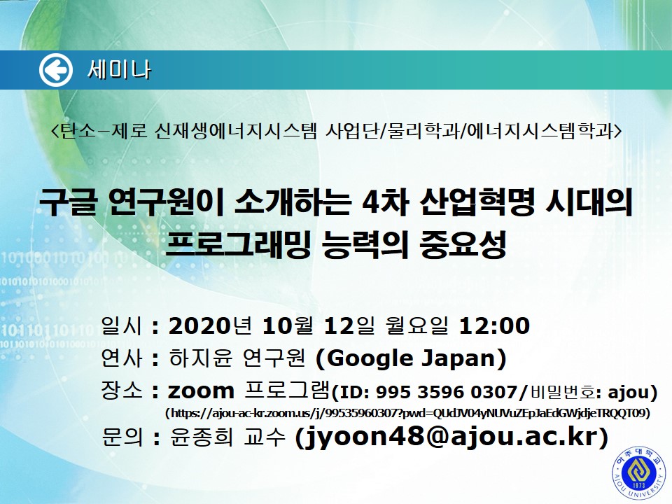960 | 세미나/포럼 | 교내 | 김소연 | 2020-10-12 | ||
