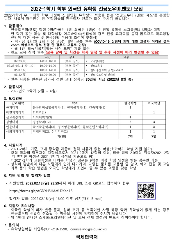 [Spring 2022] Orientaion Schedule for Ajou International Students