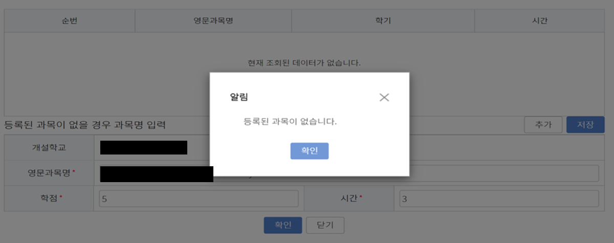대부분의 오류는 과목 추가를 하는 과정에서 발생합니다.