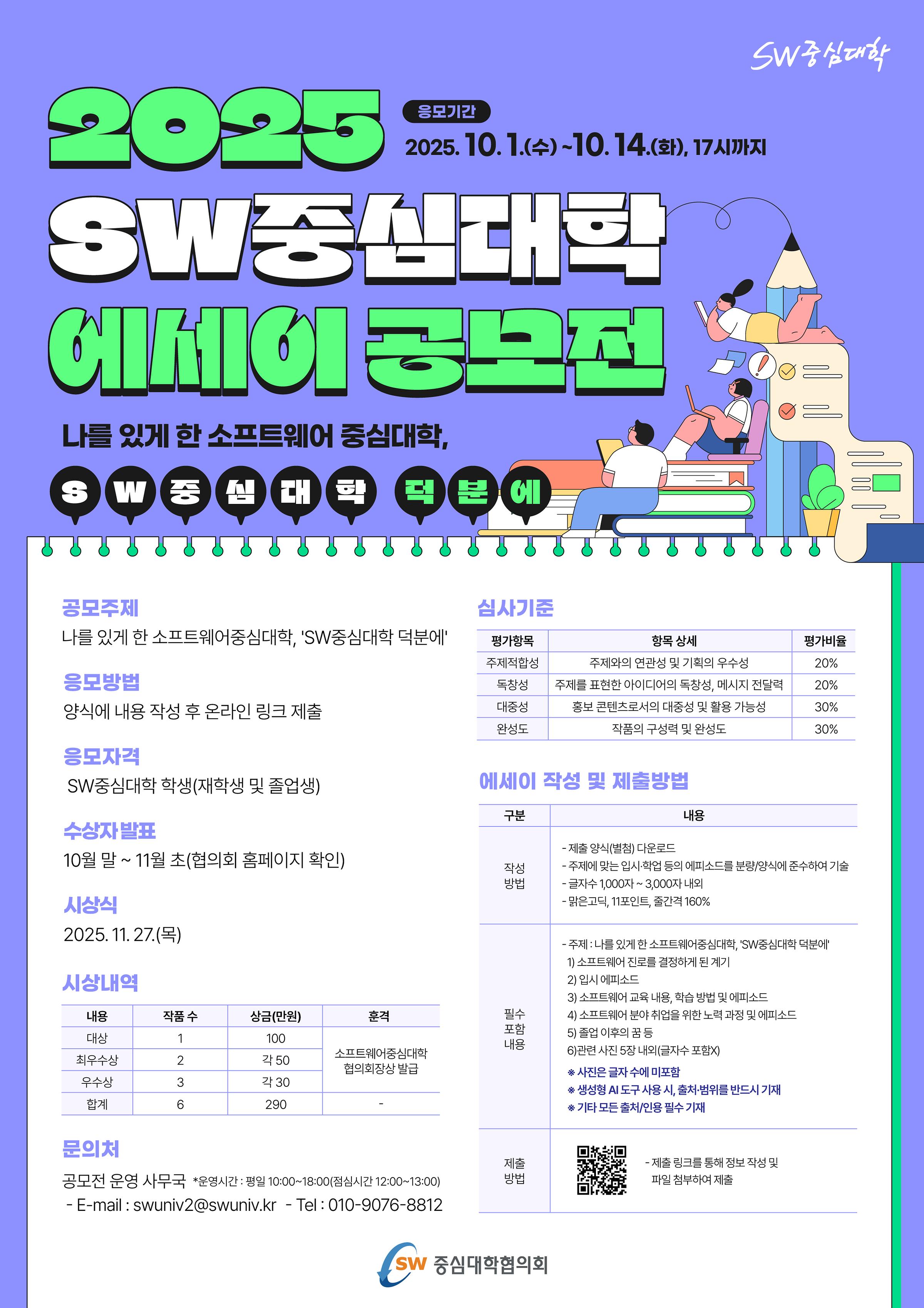 [공지] 2025 SW중심대학 에세이 공모전 안내 (응모기간 : 10/1(수)~10/14(화), 17시까지)