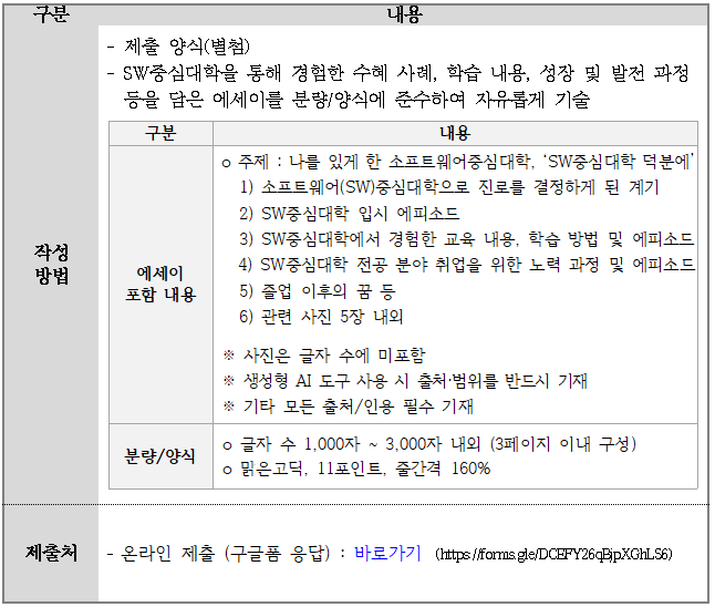 ○ (공모전명) 2025 SW중심대학 에세이 공모전