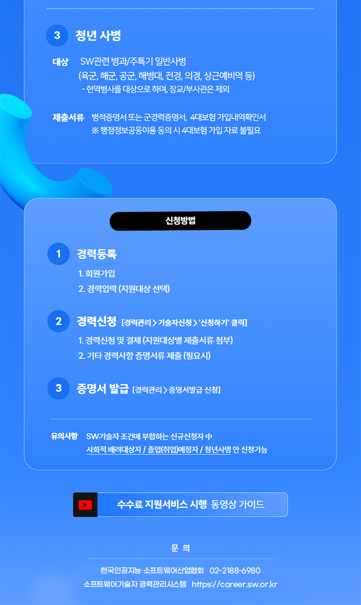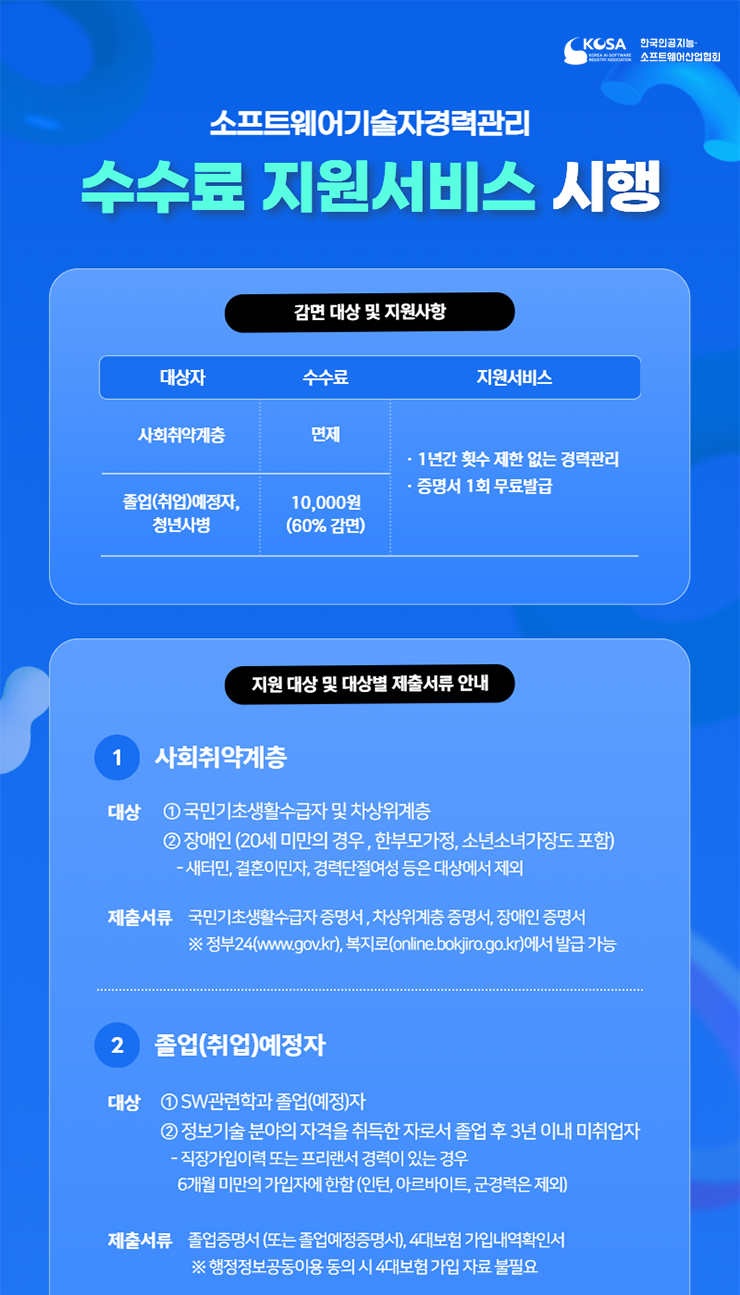 [기타] [한국AI·SW산업협회] 졸업예정자·사회취약계층 대상 SW기술자경력관리 수수료 지원서비스 시행 안내